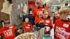 GODE KAKER OG GOD SERVICE: Det var ikke vanskelig å få solgt alle kakene med slike flinke elever. F.v.: Max Bakås, Nika Kara, Brian Engesvold, Mia Marie Aunøien Aune og Jakob Fætten. Bak lærer Gunn Sivertsgård