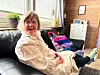 ROCKESOKK: Kari Wintervold har ikledd seg umake sokker for å markere det hun kaller rockesokkdagen, eller verdensdagen for Downs syndrom.