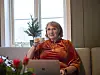 PYNTEDAME: – Jeg liker å pynte og gjøre det trivelig rundt meg, så nå har jeg bestilt nye gardiner her allerede, sier Burns Lykkås fra sofaen i Eldresenteret.Ingrid Hemming