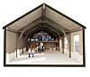 ÅPNES OPP: Arkitektene ser for seg å åpne opp Smelthytta mer, slik at kalddelen blir mer synlig for publikum som kommer inn hovedgangen. Illustrasjonen viser dagens resepsjon og restaurant i ny drakt.Pir2/Rørosmuseet
