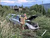 – Melding om enslig bil av veien i Renbygda. Bilen står i grøfta på hjulene, lød meldinga.
